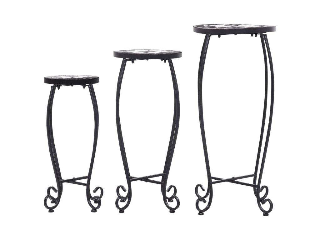 Mozaikové stolky 3 ks černé a bílé keramika 46703