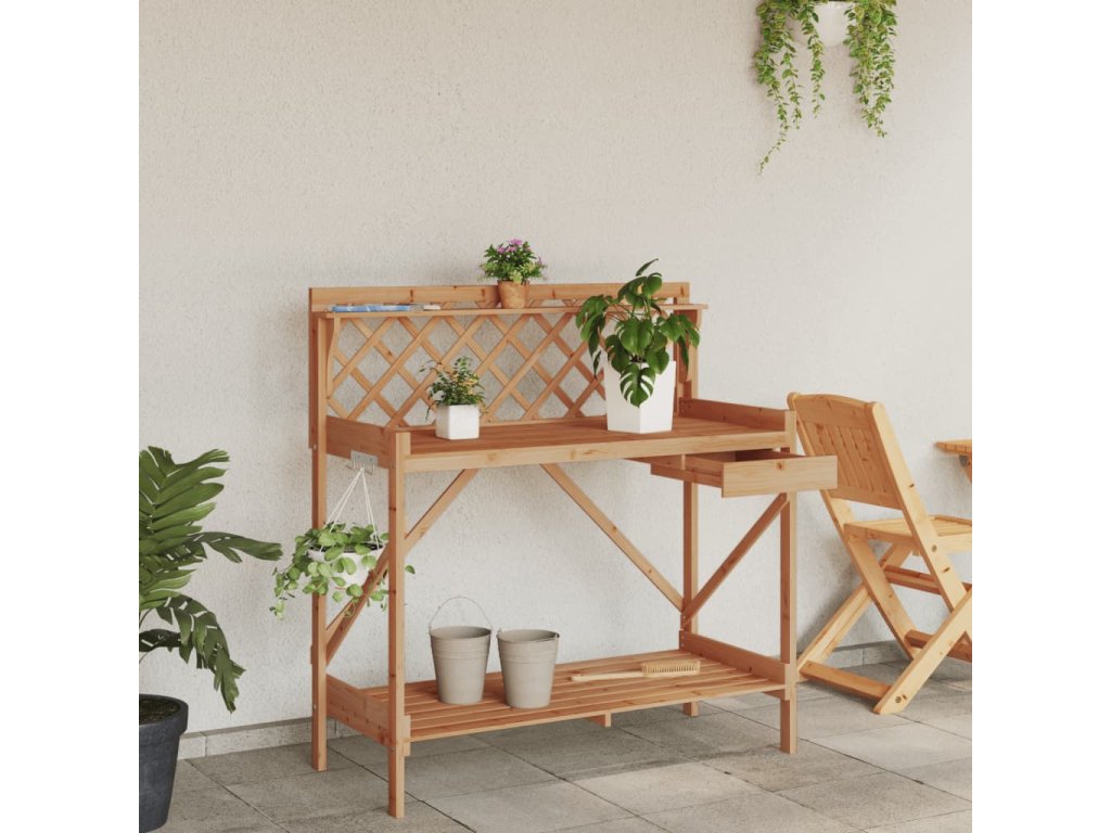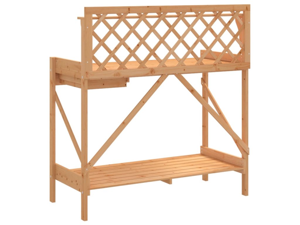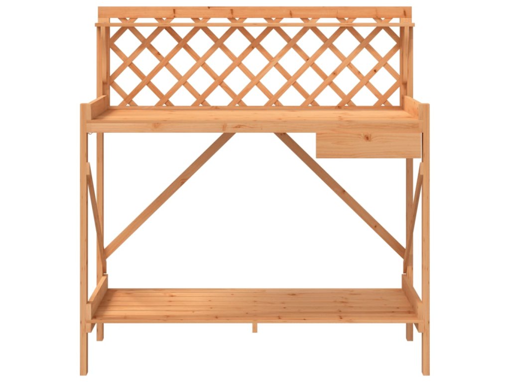 - Dekorace: Přesazovací stůl je opatřen treláží, která poskytuje prostor pro pěstování popínavých rostlin směrem vzhůru. Treláž s diamantovým vzorem je také vhodná pro zavěšení rostlin v koších nebo dekorací, které zkrášlí vaši zahradu.