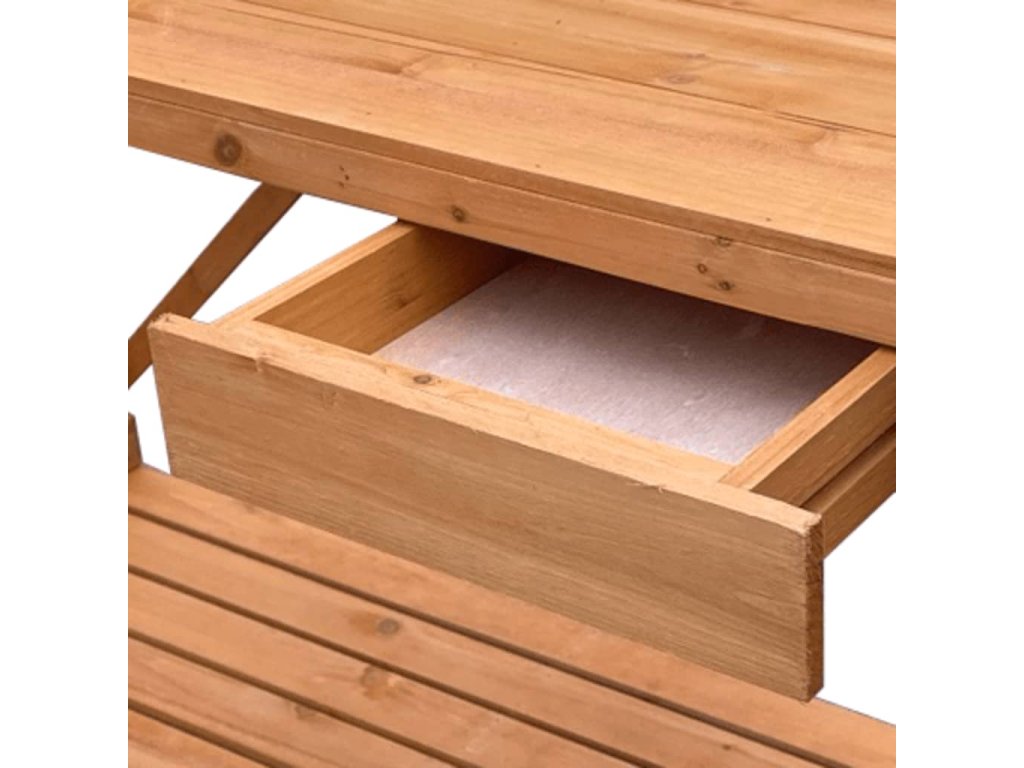 - Všestranný úložný prostor: Pracovní stůl s otevřenými policemi, horní lištou, kovovými háčky na bocích a zásuvkou poskytuje dostatek prostoru pro související předměty, jako je drobné zahradnické nářadí, zemina, hnojiva atd.