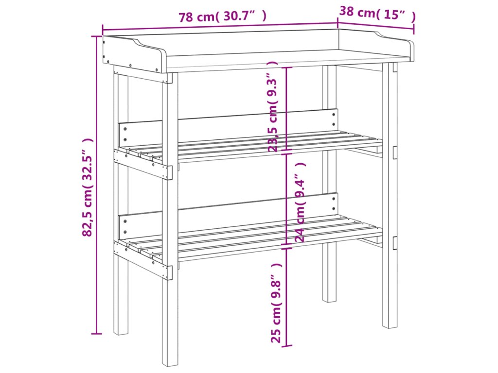 - Dostatek úložného prostoru: Dřevěný stojan na rostliny se 2 otevřenými policemi poskytuje dostatek prostoru pro související předměty, jako je drobné zahradnické nářadí, zemina, hnojiva apod.
