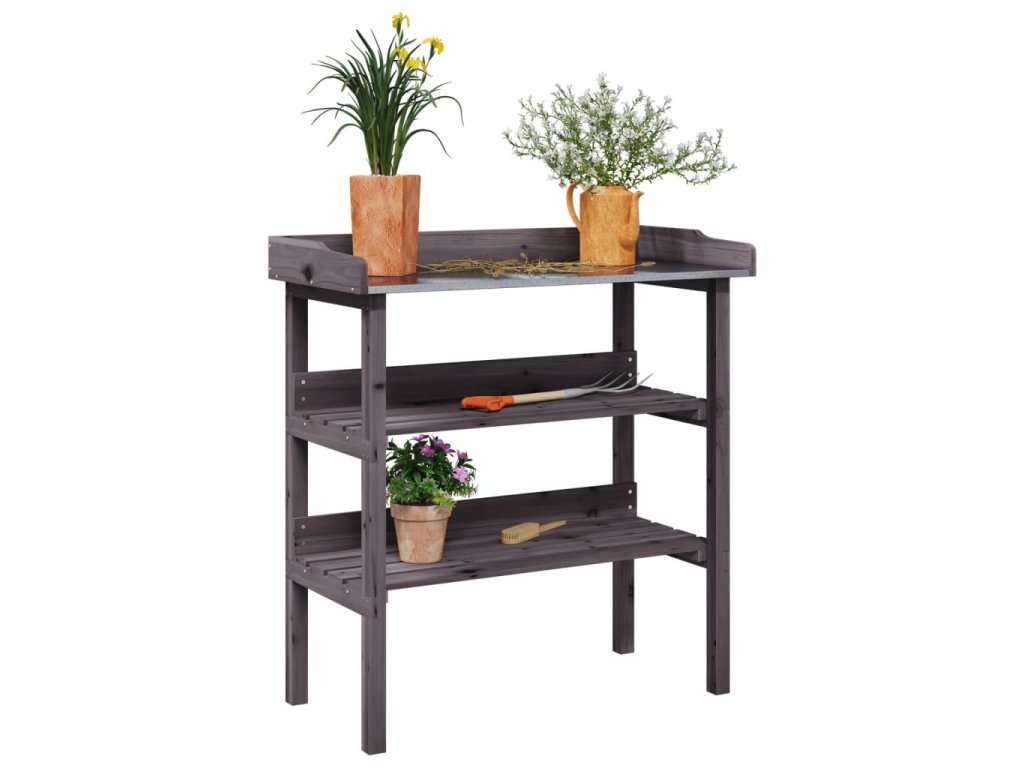 Přesazovací stůl s policemi šedý 78x38x82,5 cm masivní jedle 156354