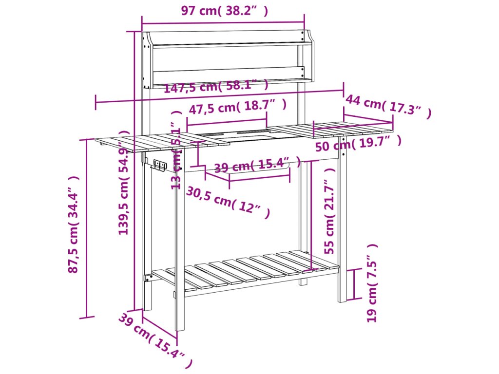 - Praktický design: Zahradní stůl na rostliny je vybaven rozkládací deskou a odnímatelným plastovým dřezem. K dřezu můžete mít volný přístup nebo jej můžete zakrýt a užívat si pevný pracovní prostor.