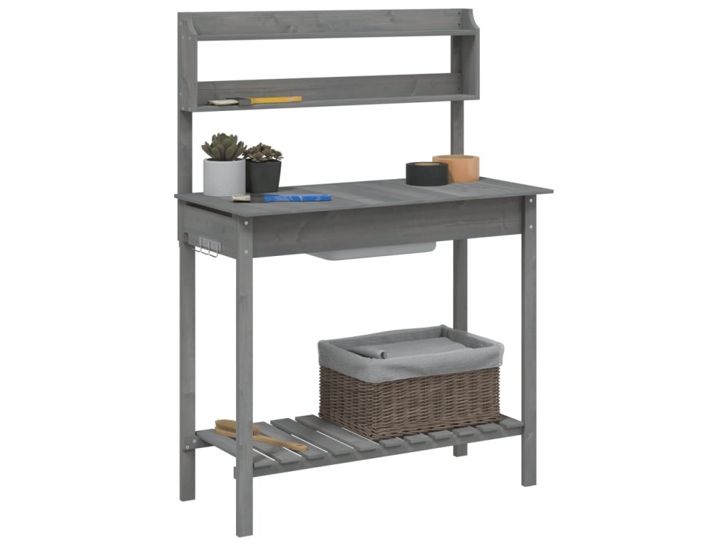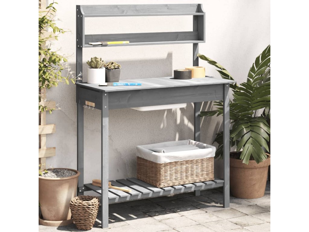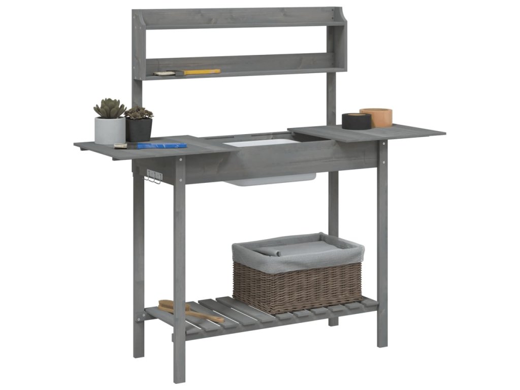 Přesazovací stůl se dřezem šedý 147,5x44x139,5 cm masivní jedle 156348