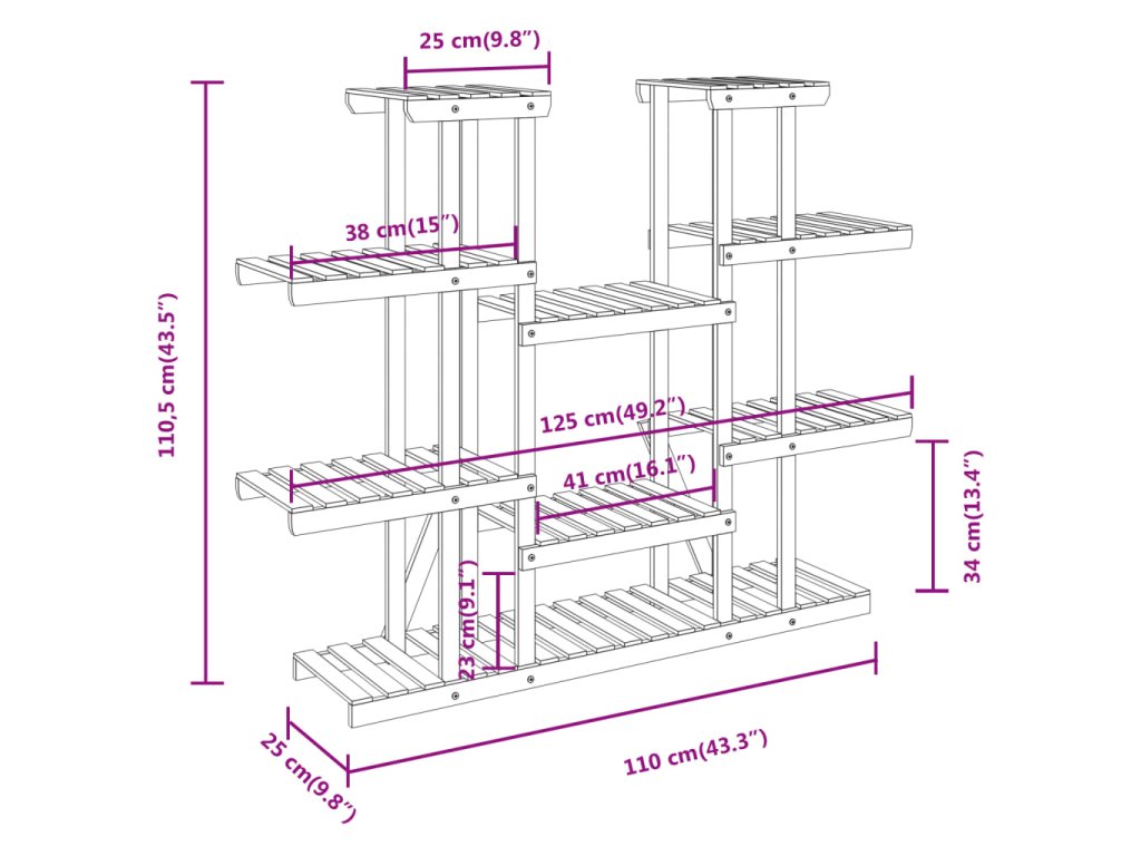 Stojan na květiny 110 x 25 x 110,5 cm masivní jedlové dřevo 362857