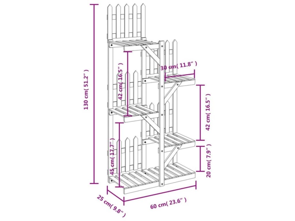 Stojan na květiny 60 x 25 x 130 cm masivní jedlové dřevo 362873