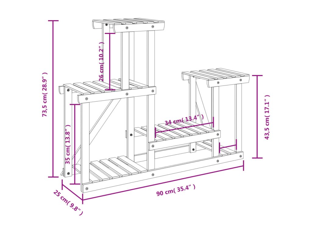 Stojan na květiny 90 x 25 x 73,5 cm masivní jedlové dřevo 362876