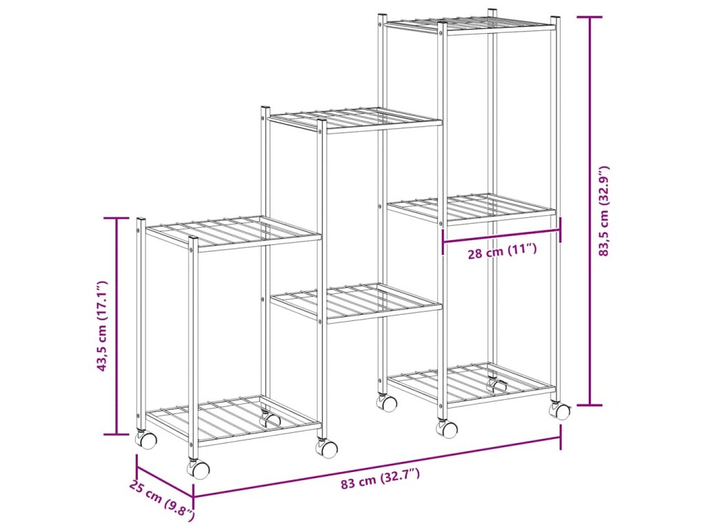 Stojan na květiny s kolečky 83 x 25 x 83,5 cm černý železo 343130