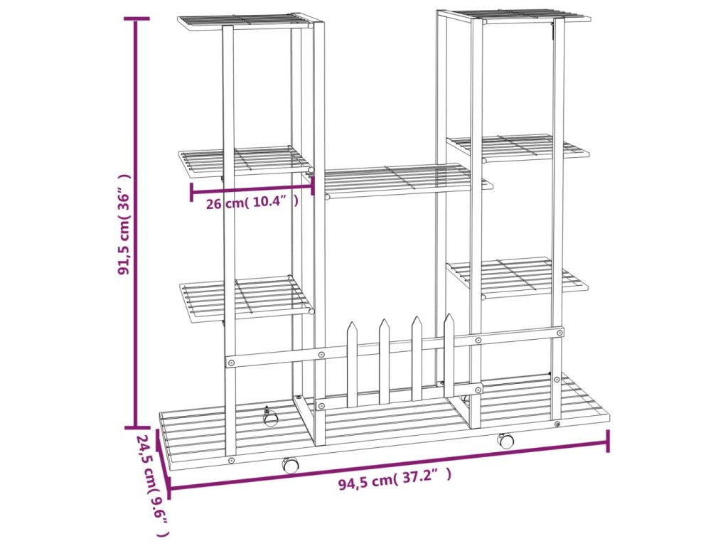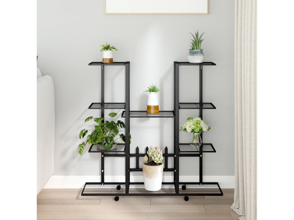 Stojan na květiny s kolečky 94,5 x 24,5 x 91,5 cm černý železo 343121
