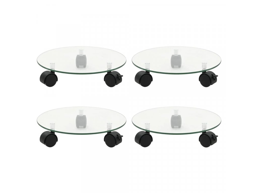 Vozíky na rostliny 4 ks 28 cm tvrzené sklo kulaté 3144028