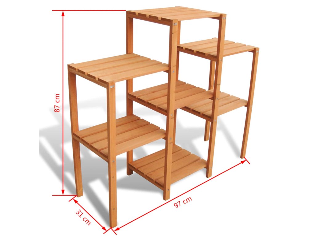 Máte-li spoustu květin a rostlin v květináčích, pak možná hledáte ideální způsob, jak je uspořádat a co nejlépe vystavit. Tento stojan na květiny představuje ideální řešení pro organizaci vašich květníků a květináčů v interiéru, na zahradě, terase či balkonu. Je zhotovený z masivního dřeva, odolného vůči povětrnostním podmínkám, takže ho můžete bez obav celoročně používat venku.