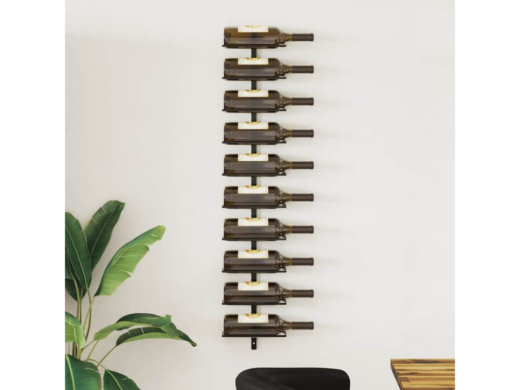 Nástěnný stojan na víno na 10 lahví černý kov 289566