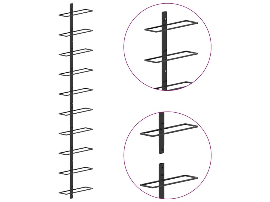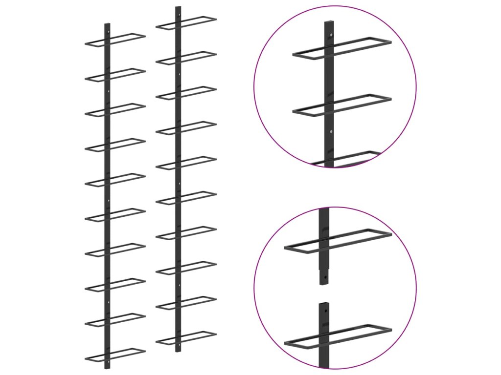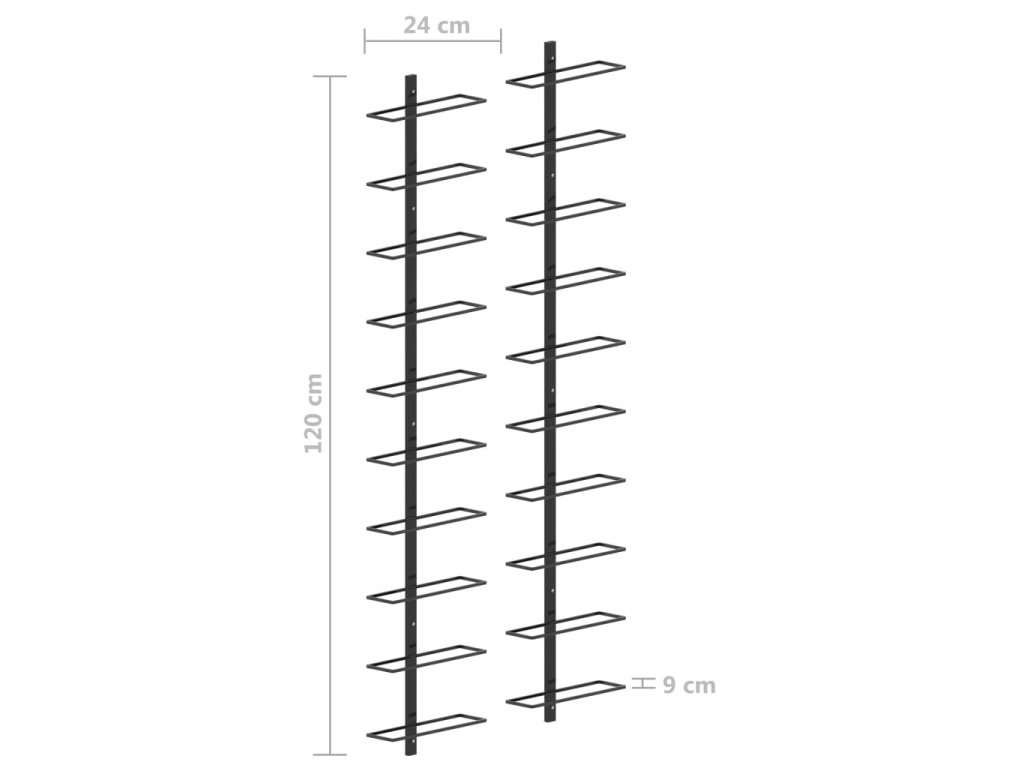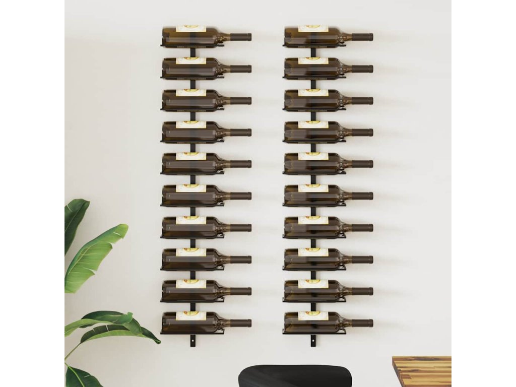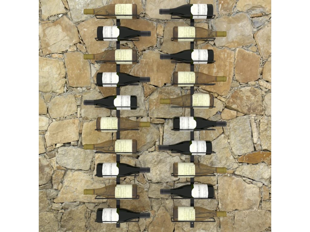 Nástěnný stojan na víno na 20 lahví 2 ks černý kov 289567