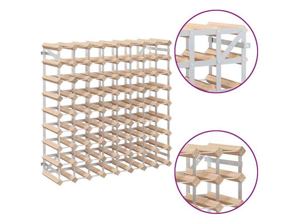 Stojan na víno pojme až 72 lahví vína. Jeho jednoduchý a úhledný design vnese do vaší domácnosti rustikální šarm. Výborně se také hodí jako dárek pro přátele či známé, kteří milují víno. Jelikož je vyrobený z pozinkované oceli a masivního dřeva, je mimořádně odolný! Sestavení stojanu je snadné, montážní materiály jsou totiž součástí balení.