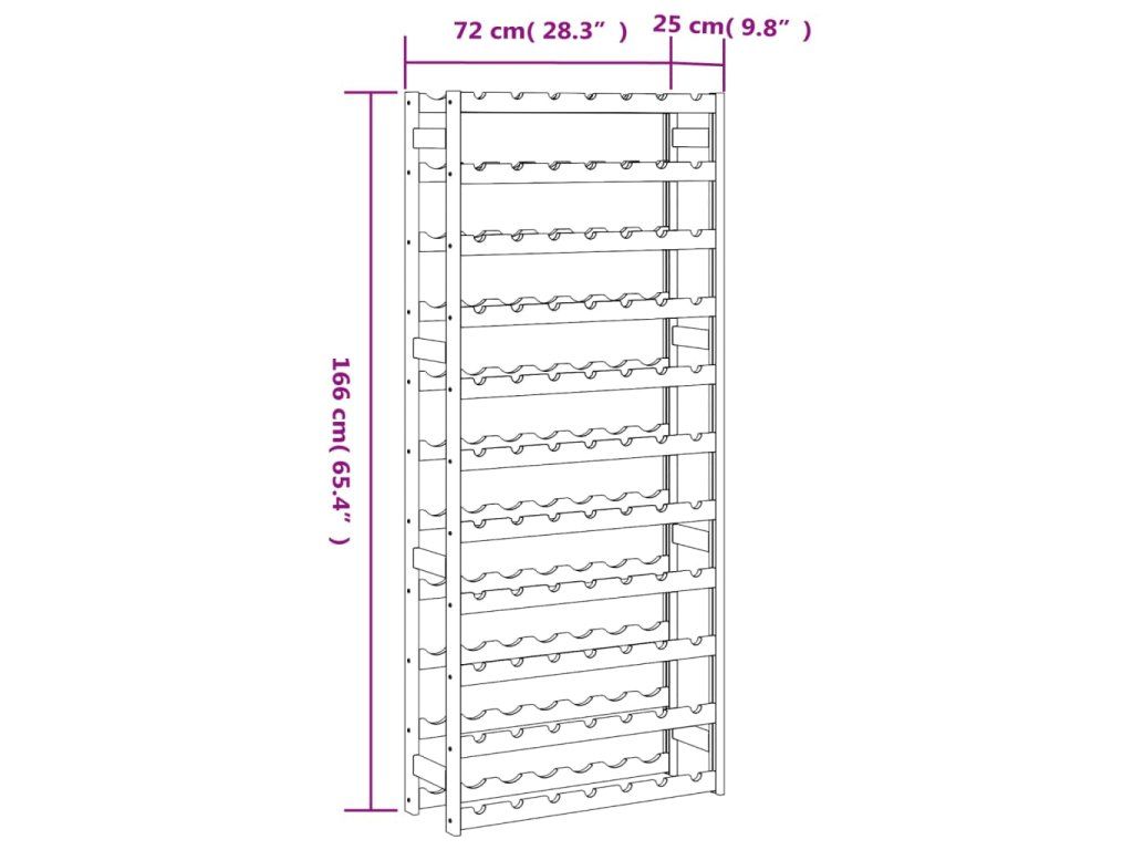 - Masivní borové dřevo: Tento stojan na víno je vyrobený z masivní borovice. Masivní borové dřevo je krásný přírodní materiál. Borové dřevo má rovnou kresbu a obsahuje suky, které materiálu dodávají jeho charakteristický, rustikální vzhled.