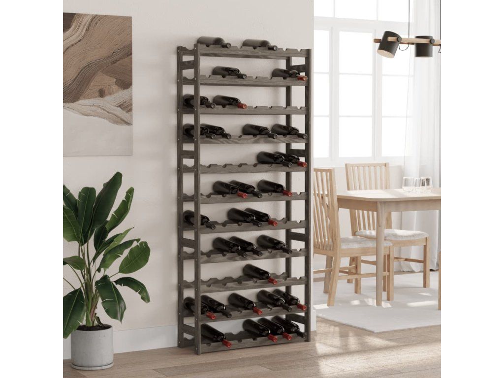 Stojan na víno na 77 lahví šedý masivní borové dřevo 373383