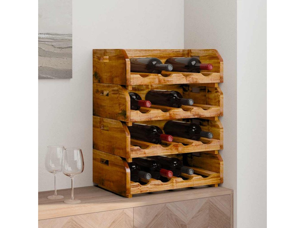 Tato sada 4 dřevěných regálů na víno je ideální pro milovníky vína a dodá každému interiéru rustikální šarm. Každý regál pojme 4 lahve vína.