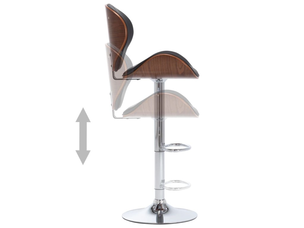 Židle je čalouněná umělou kůží, která vám jednak zajistí optimální pohodlí a jednak se snadno čistí. Dřevěný rám jí dodává na kráse i stylovosti. Chromovaná kovová podstava židle zaručuje mimořádnou odolnost a vestavěná opěrka na nohy vám poskytne dodatečný komfort. Vzhledem k ergonomickému tvaru se na židli můžete pohodlně uvelebit na celé hodiny. Mechanismus s plynovým pístem umožňuje nastavit si její výšku dle momentálních potřeb. Barová židle představuje ideální doplněk do každého funkčně zařízeného baru či jídelny.