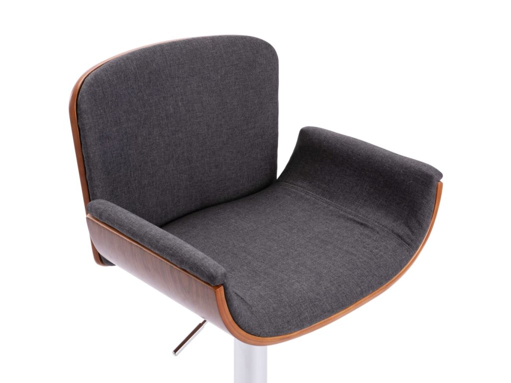 Tato barová židle s působivým moderním designem je esteticky příjemná a také velmi pohodlná. Sedák s textilním čalouněním je pohodlně polstrovaný. Dřevěný rám zdůrazňuje unikátní krásu a styl nábytku. Kovový rám je velmi robustní, zatímco vestavěná opěrka pro nohy a ergonomický design přispívají k pohodlí při sezení. Mechanismus plynového pístu umožňuje nastavit výšku židle. Tato židle je skvělým doplňkem do jakéhokoli baru nebo jídelny.