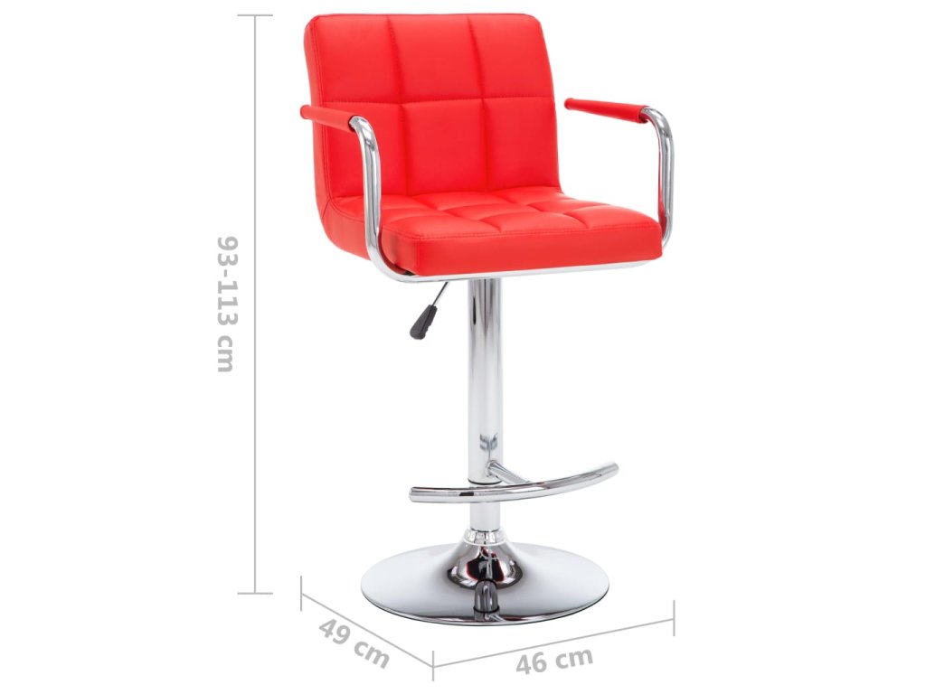 Sedák i opěradlo jsou čalouněné kvalitní umělou kůží, takže se vám na nich bude velmi pohodlně sedět. Pevný rám z chromované oceli navíc židlím zajišťuje mimořádnou odolnost a dlouhou životnost. Praktický mechanismus s plynovým pístem umožňuje nastavit si výšku stoličky dle vašich potřeb. Zabudované područky a opěrka nohou vám zase při sezení poskytnou dodatečnou oporu a maximální komfort.