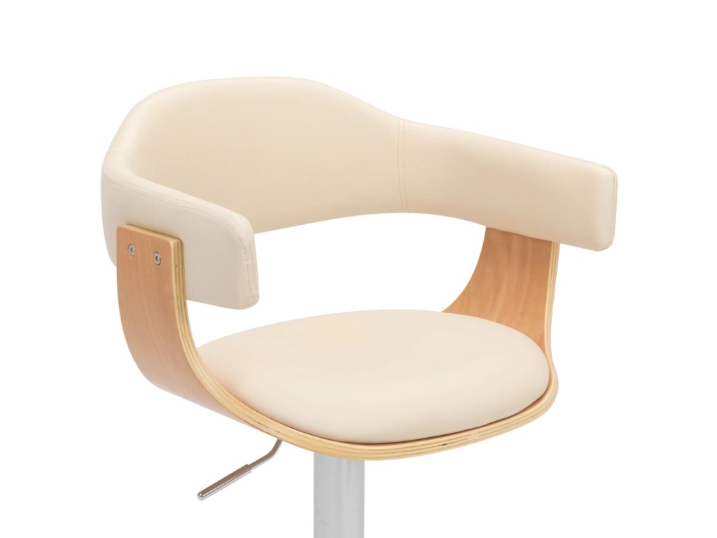 Stolička je potažená vysoce kvalitní umělou kůží a dobře polstrovaná, aby se vám na ní pohodlně sedělo. Rám z ohýbaného dřeva podtrhuje její jedinečnou krásu a styl. Železná konstrukce zaručuje vysokou odolnost, zatímco zapuštěná opěrka nohou vám zpříjemní posezení. Vzhledem k ergonomickému tvaru se na židli můžete pohodlně uvelebit na celé hodiny. Mechanismus s plynovým pístem umožňuje nastavovat její výšku. Barová stolička představuje dokonalý doplněk do každého funkčního baru či jídelny.