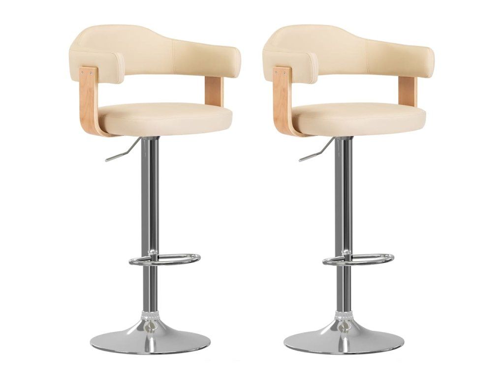 Barové stoličky 2 ks krémové ohýbané dřevo a umělá kůže 327337