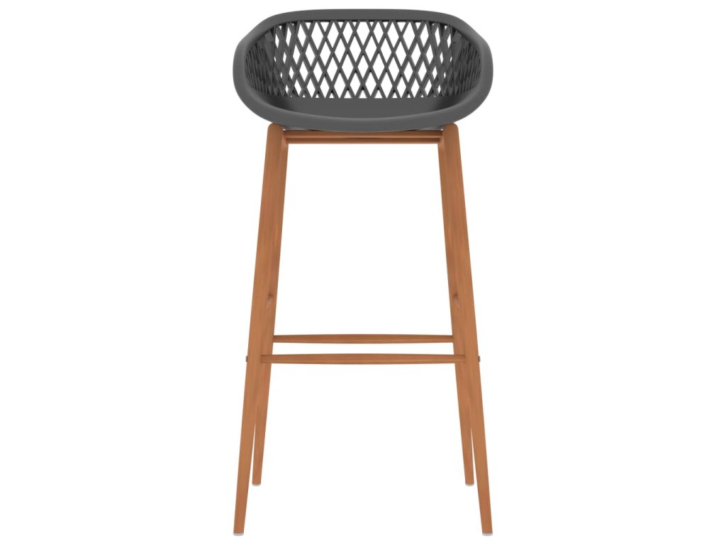 Barové židle mají ergonomicky tvarované sedadlo s integrovaným nízkým opěradlem a vyplétaným vzhledem. Jsou vyrobené z robustního PP materiálu a stojí na pevných kovových nohách s transférovým potiskem s dřevěným vzhledem, takže jsou robustní a odolné.
