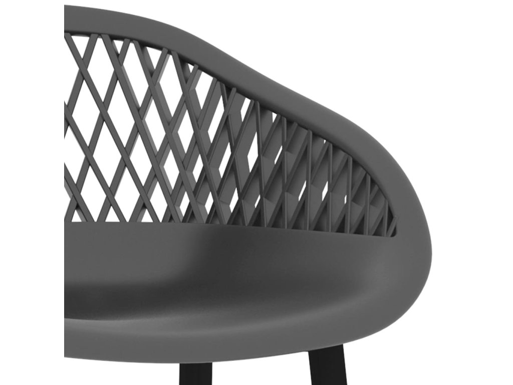 Barové židle mají ergonomicky tvarované sedadlo s integrovaným nízkým opěradlem a vyplétaným vzhledem. Jsou vyrobené z robustního PP materiálu a stojí na pevných práškově lakovaných kovových nohách, takže jsou robustní a odolné.