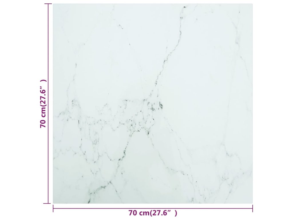 Stolní deska bílá 70 x 70 cm 6 mm tvrzené sklo mramorový design 322256