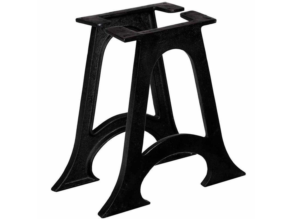 Nohy jsou vyrobeny z masivní litiny, která byla vyleštěná, natřená a nalakovaná. Díky tomu jsou pevné a hodně toho vydrží. Protože jsou navrženy ve tvaru písmene A a spojuje je příčka, unesou i těžkou desku. Každá z nich je zakončena montážní podložkou, do které jsou navrtané díry. Montáž desky je proto rychlá a jednoduchá.