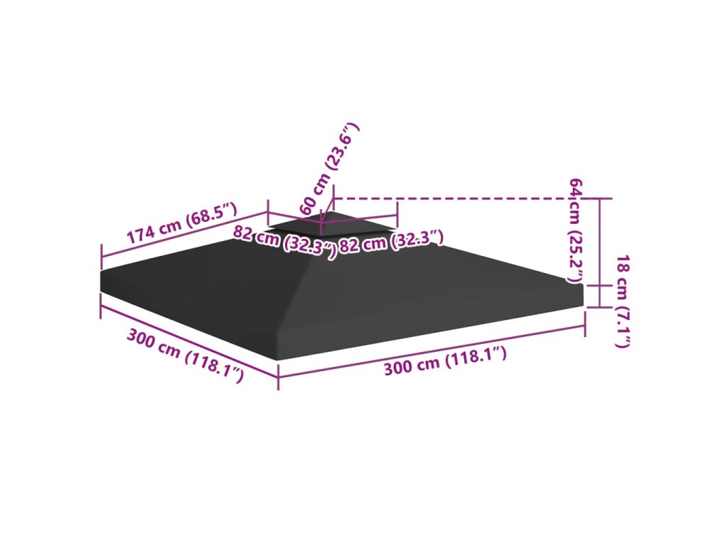 Dvojitá střecha na altán 310 g/m² 3 x 3 m černá 312072