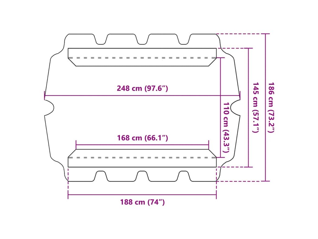 - Rozměry stříšky: 188 x 122,5/145 x 18 cm (D x Š x V)