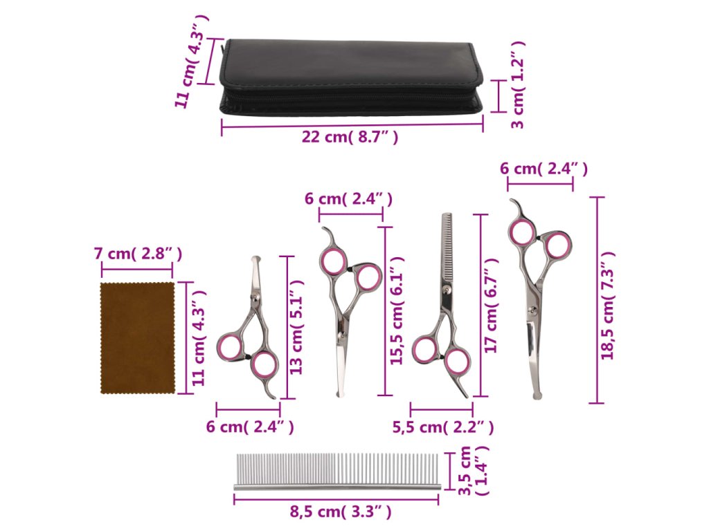 5dílná sada nůžek na stříhání psů nerezová ocel 172416