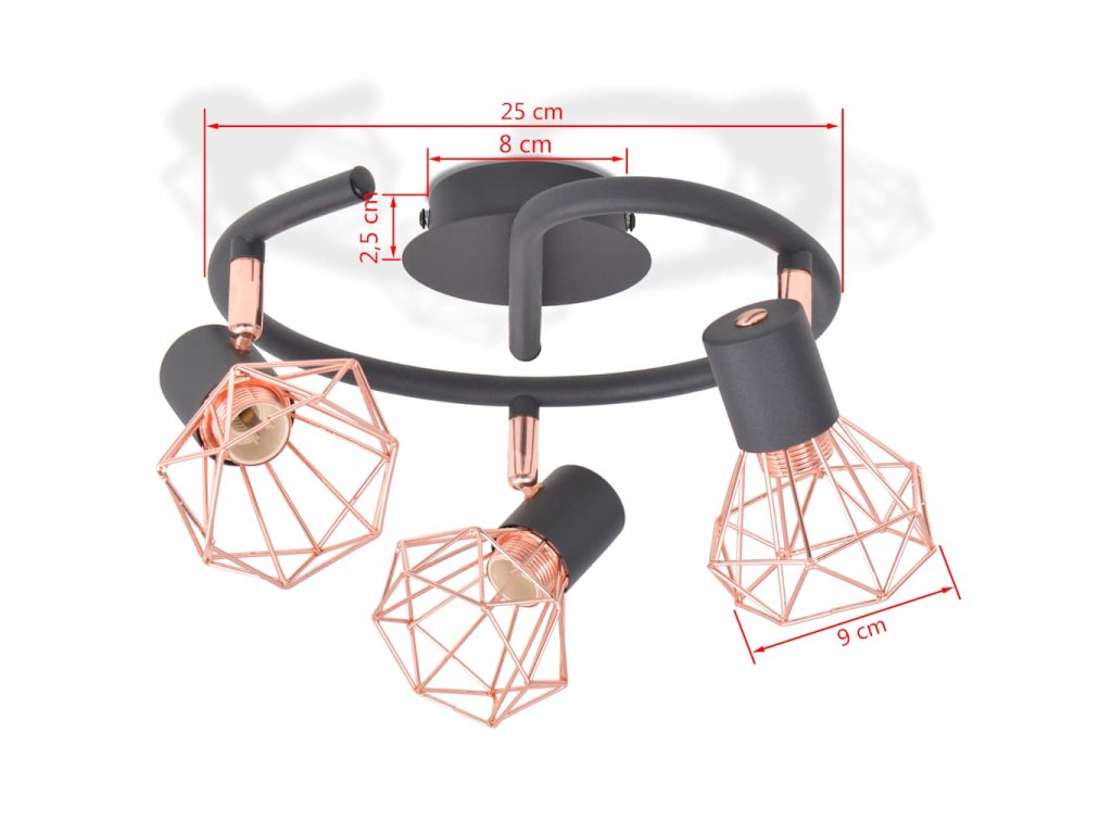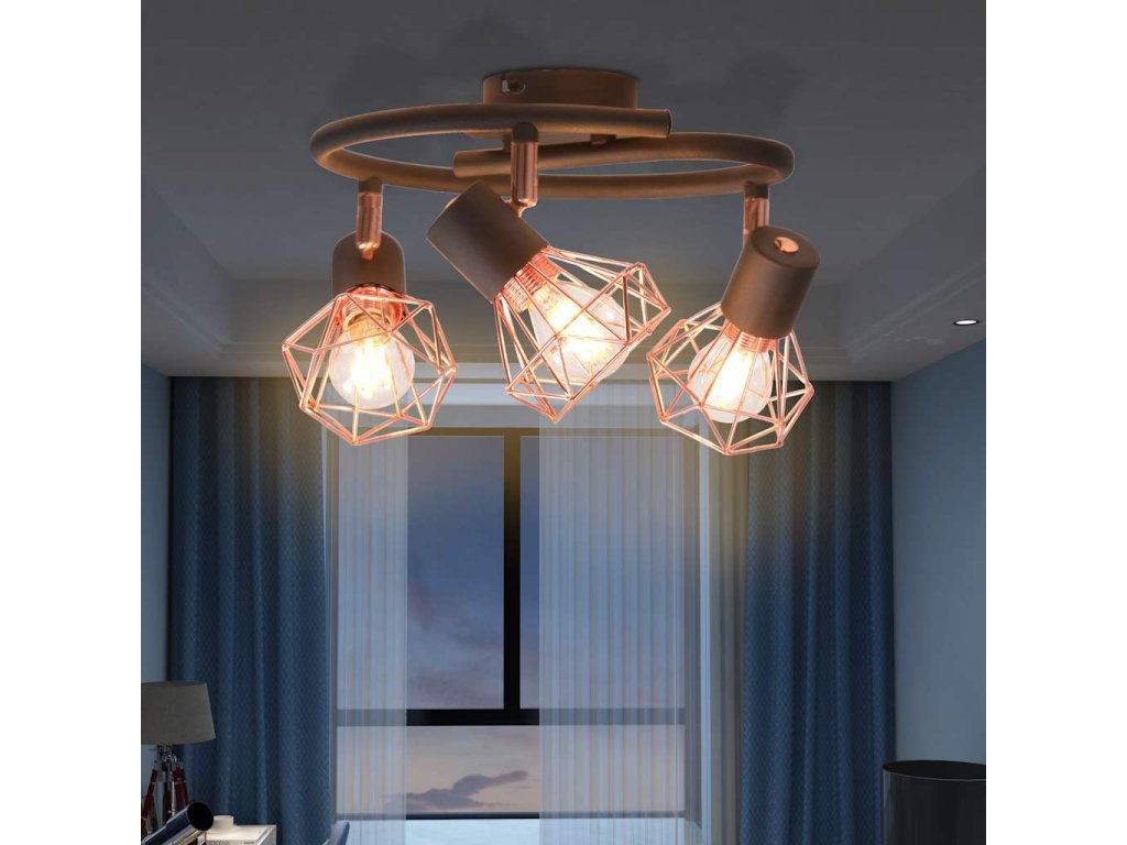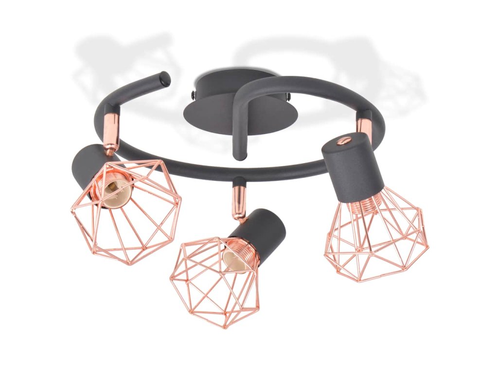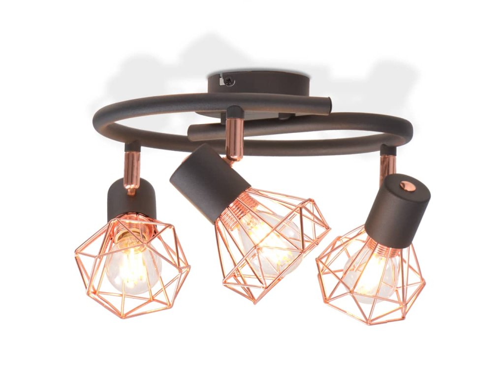 Dodejte svému interiéru trochu industriálního vzhledu s touto fantastickou stropní lampou. Má 3 dekorativní bodovky s výraznými geometrickými stínítky, vyrobenými z drátu v líbivém měděném odstínu, takže skvěle zapadne do každého pokoje.