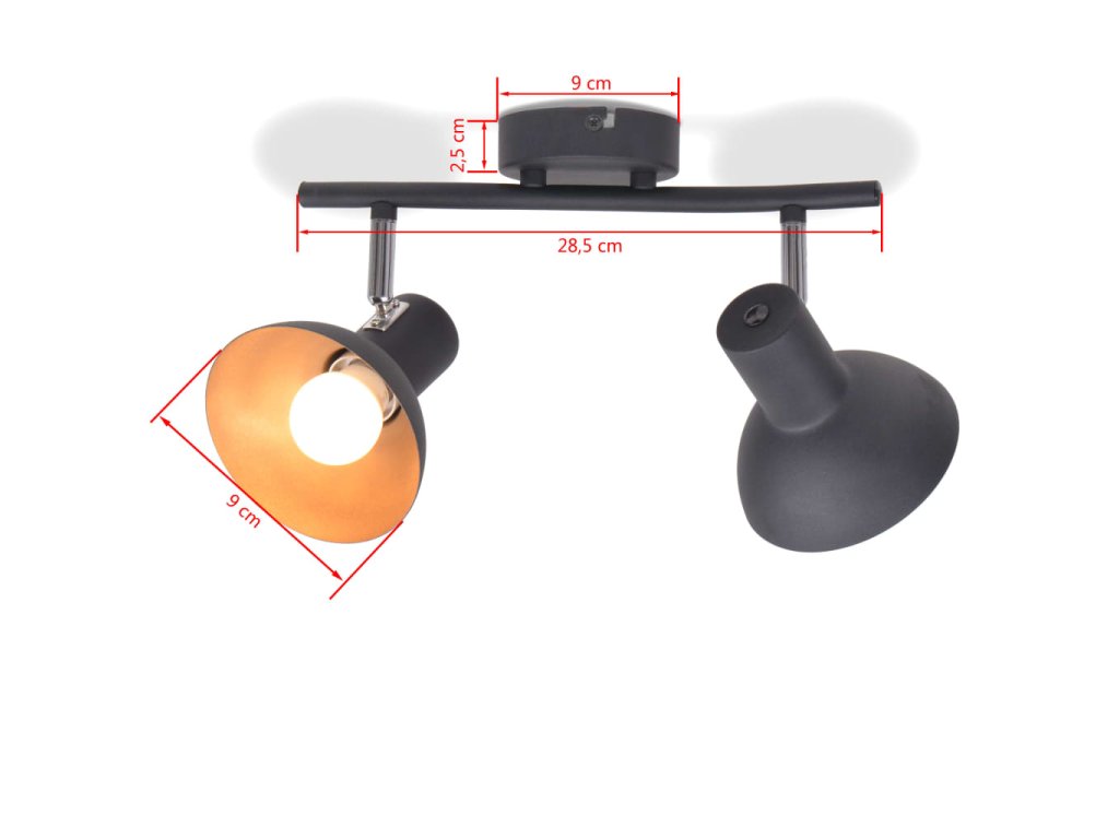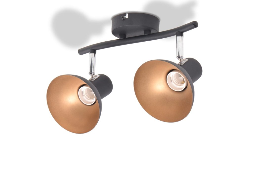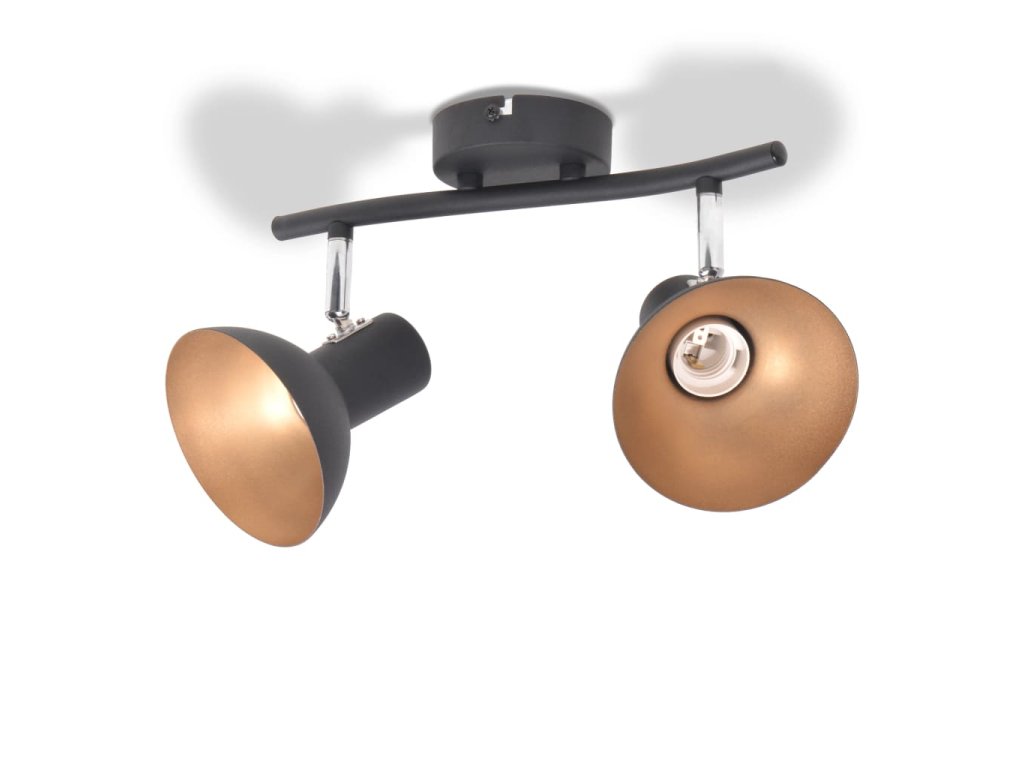 Stropní světlo se 2 bodovkami, E14, černé a měděné 244389