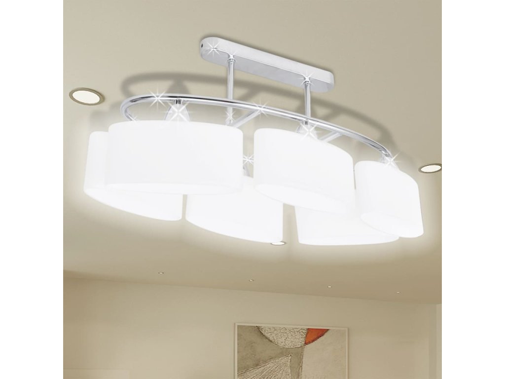 Lampa má vysoce kvalitní kvádrovou kovovou základnu a dá se snadno upevnit na jakýkoliv strop. Světlo bude nádherně prosvítat delikátními oválnými stínidly a prozáří všechny kouty místnosti. Toto exkluzivní stropní svítidlo zaručeně vynikne svou příjemnou jednoduchostí.