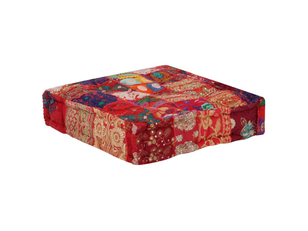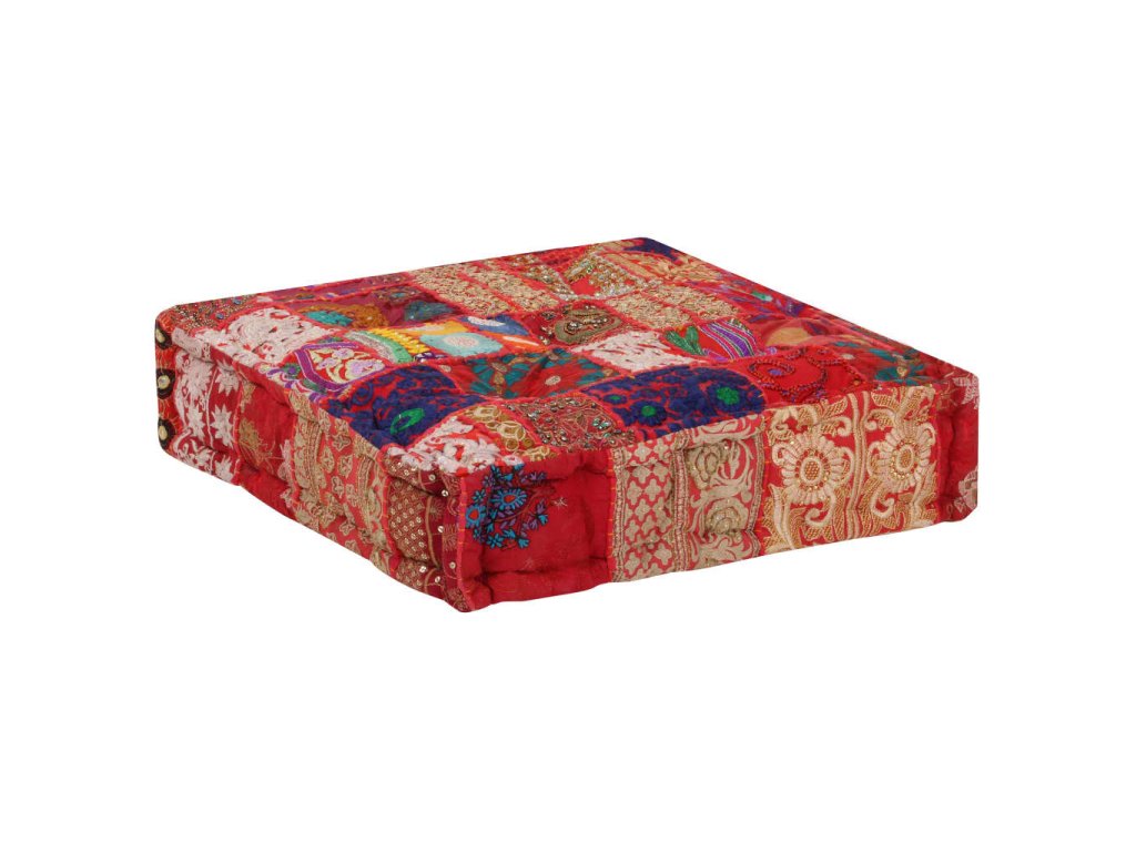 Sedací puf patchwork čtverec ručně vyrobený 50x50x12 cm červený 246575