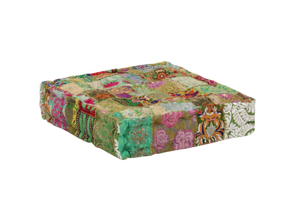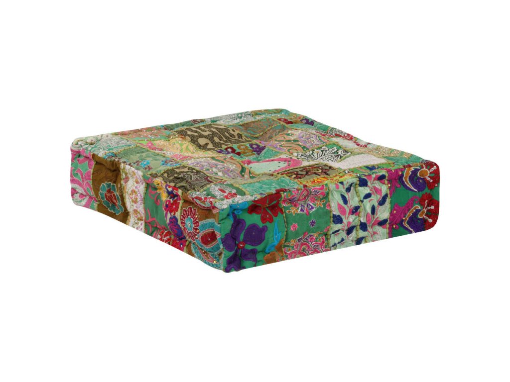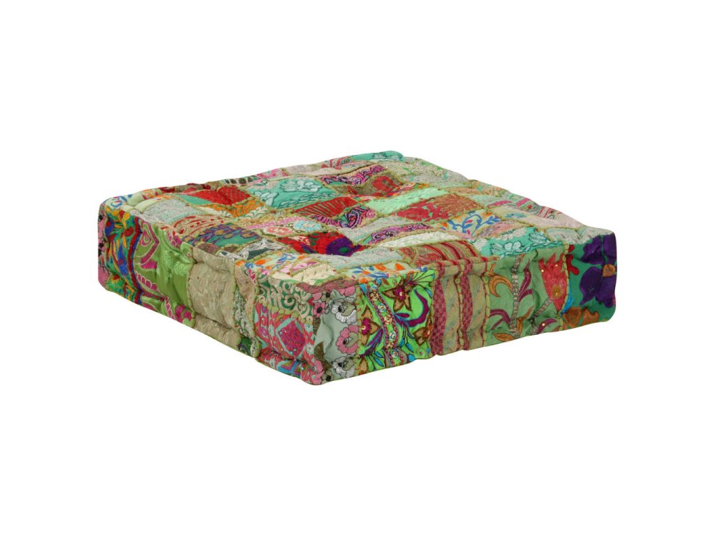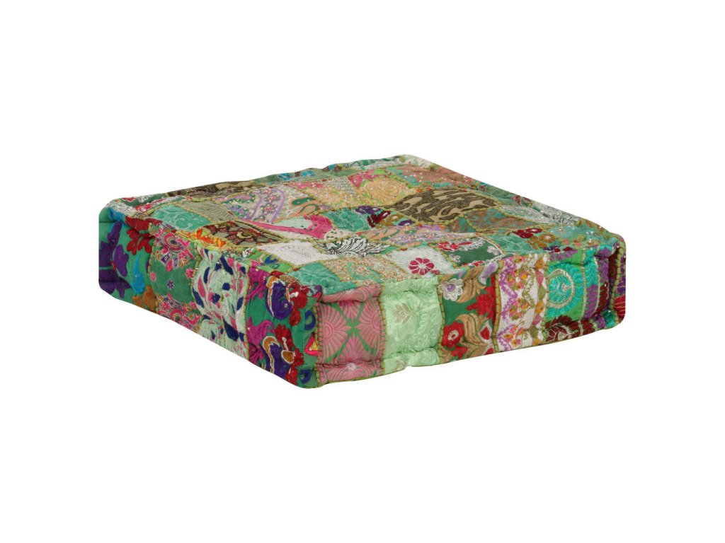 Sedací puf patchwork čtverec ručně vyrobený 50x50x12 cm zelený 246576