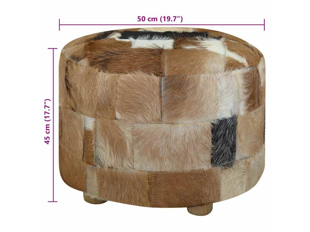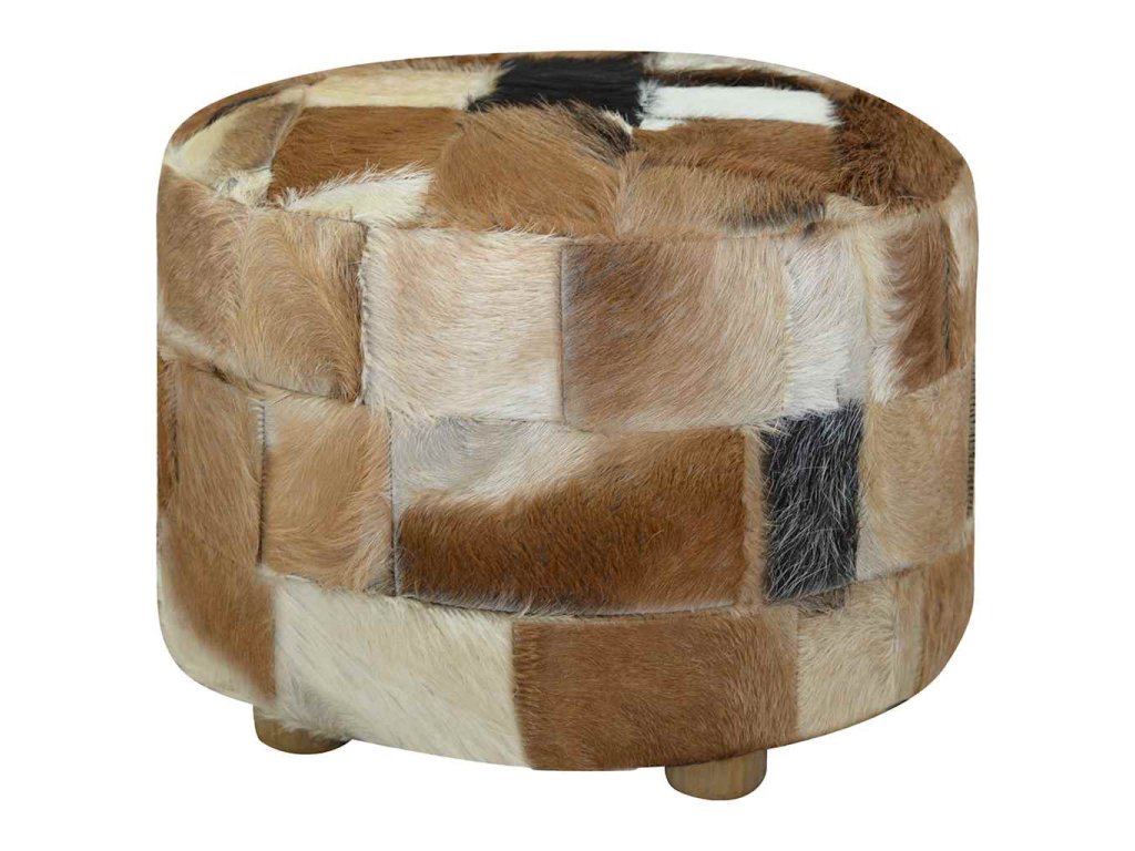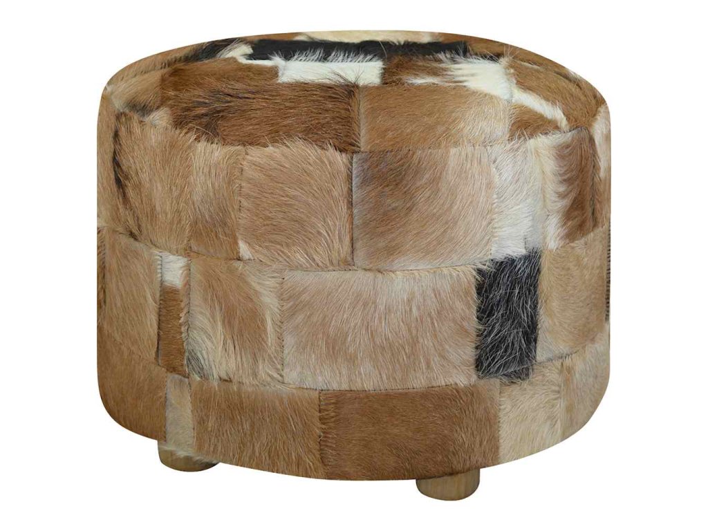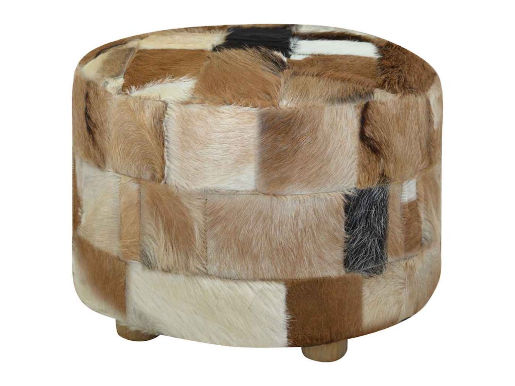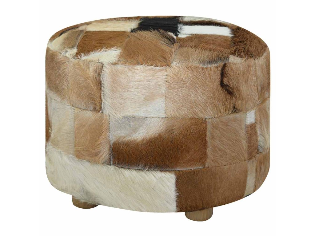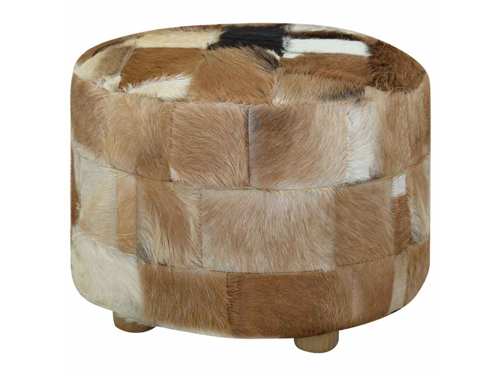 Taburet, kozí kůže, kulatý, 50x50x45 cm 244548