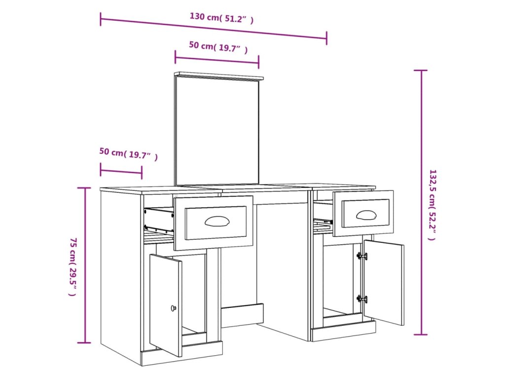 Toaletní stolek se zrcadlem bílý 130 x 50 x 132,5 cm 3185335