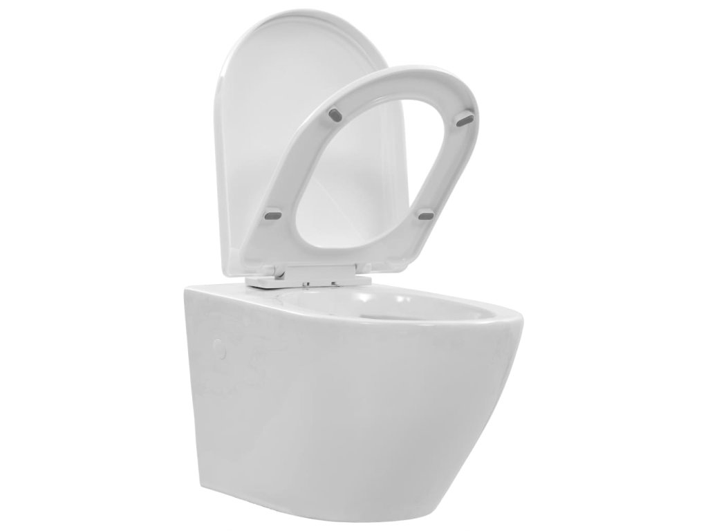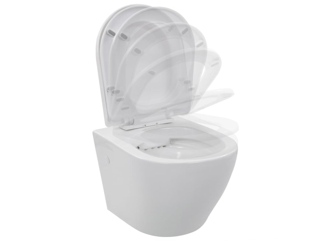 Tato toaleta z bezokrajovým splachováním má zvláště odolný a nízkoúdržbový keramický povrch, který usnadňuje čištění a zaručuje dlouhé roky používání. Vápno a usazeniny se na tento odpuzující povrch jen tak nenalepí. Dodané toaletní sedátko s automatickým měkkým zavíracím mechanismem brání hlučnému padání víka na toaletní mísu. Montážní součástky jsou zcela skryté, čímž se dosáhne elegantního a jednolitého vzhledu.