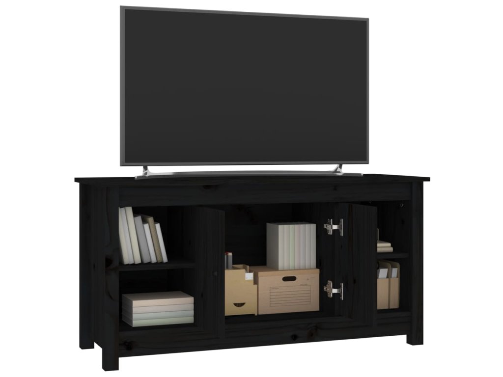 TV skříňka černá 103 x 36,5 x 52 cm masivní borové dřevo 814578