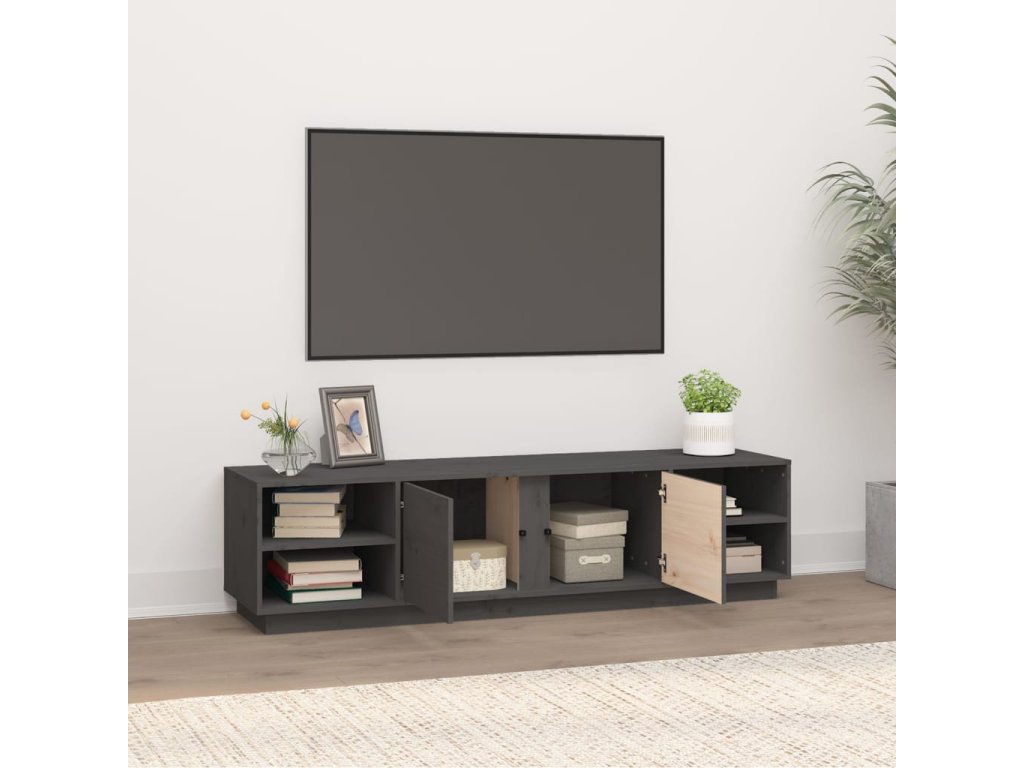 TV skříňka šedá 156 x 40 x 40 cm masivní borové dřevo 814456