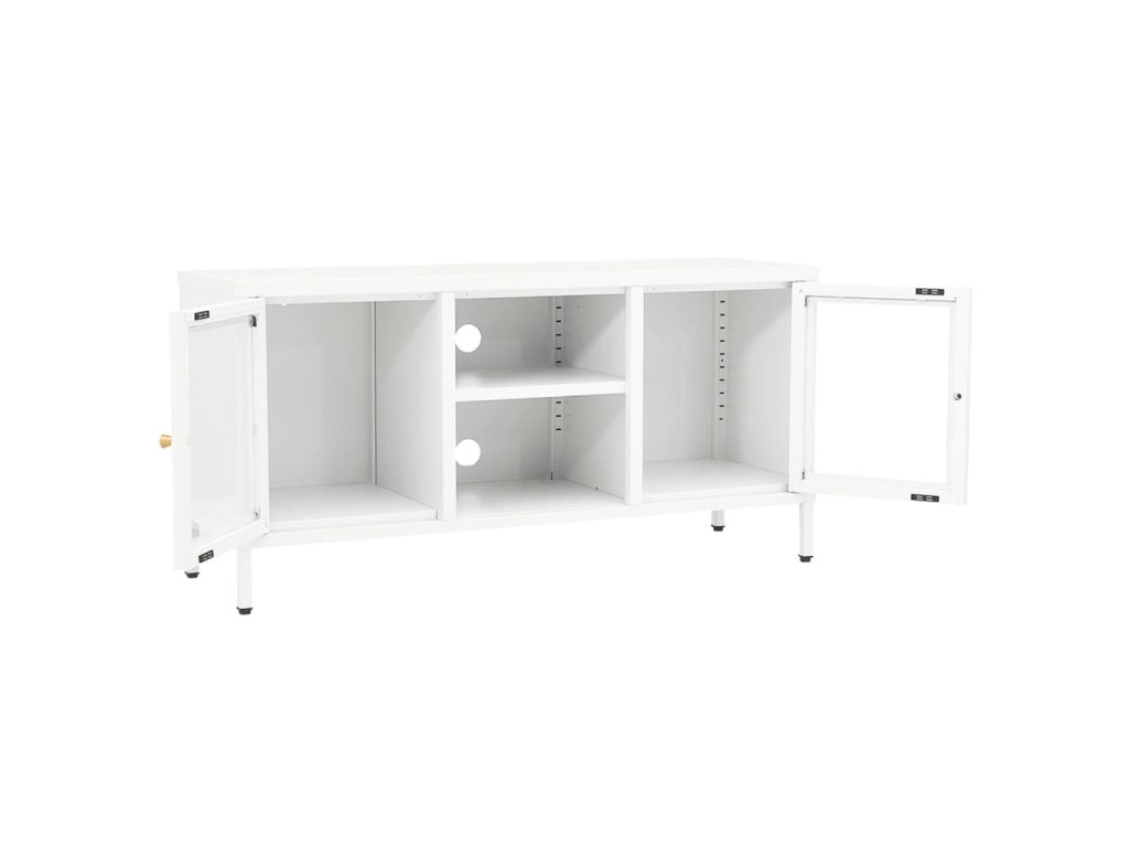 Konstrukce tohoto TV stolku je z oceli, takže je pevný a odolný a zajišťuje roky používání. Přihrádka za skleněnými dvířky a otevřené police nabízí dostatek úložného prostoru pro přehledné uschování a vystavení vašich knih, časopisů, DVD, váz a dalších dekorativních předmětů na dosah ruky. Police se dá nainstalovat v různých úrovních, máte tak tedy možnost měnit velikost úložného prostoru. Nohy dodávají skříňce mimořádnou stabilitu a lze je snadno nastavit na požadovanou výšku. Skříňka se navíc snadno čistí vlhkým hadříkem.