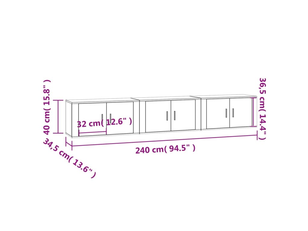Nástěnné TV skříňky 3 ks bílé 80 x 34,5 x 40 cm 3188358