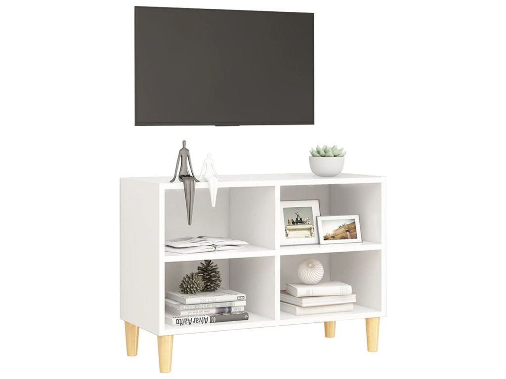 TV stolek nohy z masivního dřeva bílý 69,5 x 30 x 50 cm 805923