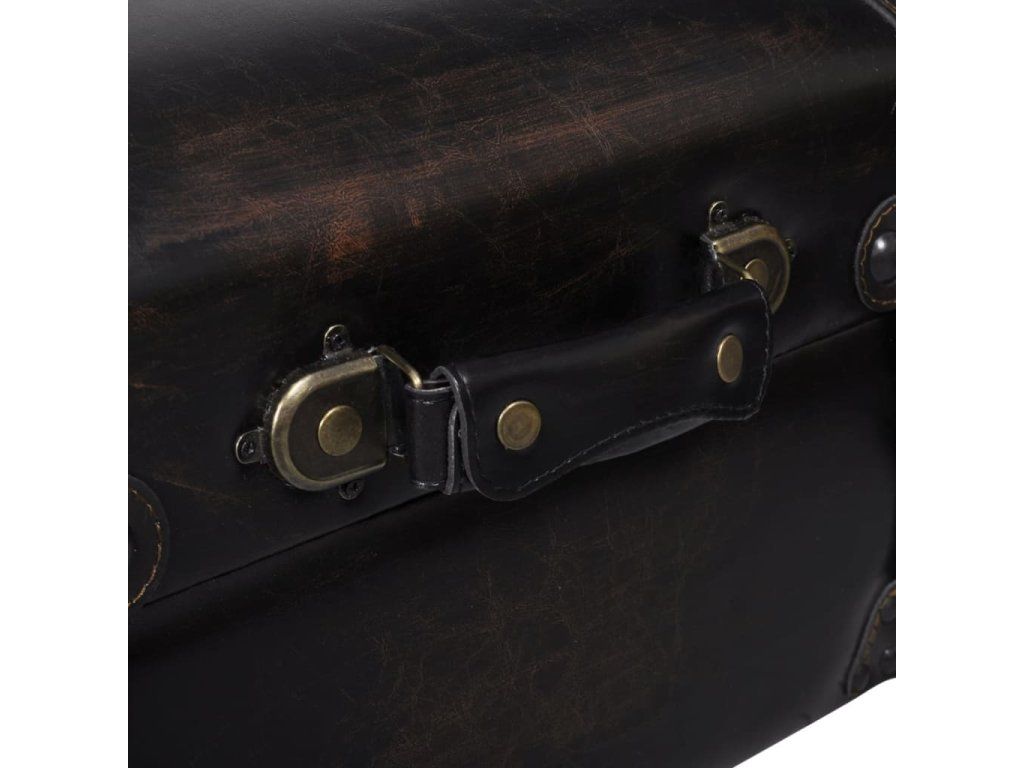 - Přezky a kovové zámky, které lavici dodávají starobylý vzhled