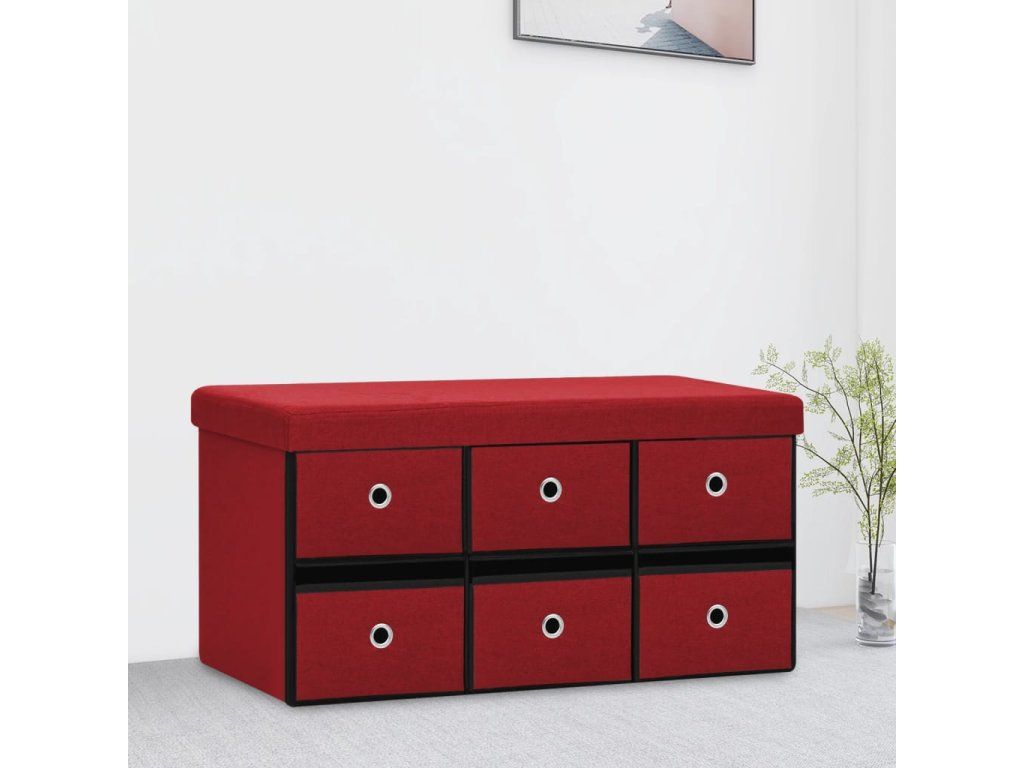 Skládací úložná lavice vínová 76 x 38 x 38 cm umělý len 338816