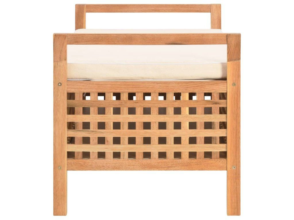Lavice je vyrobena z masivního ořechového dřeva a překližky, je tudíž pevná a odolná. Skrývá se v ní prostorná úložná přihrádka, která je jako dělaná ke skladování ručníků, oblečení, podušek, hraček, nářadí a dalšího příslušenství. Její mřížkové provedení umožňuje dobré větrání. Silně polstrovaná poduška se vám navíc postará o mimořádně pohodlné sezení. Je opatřena povlakem na zip, který snadno sundáte a vyperete.
