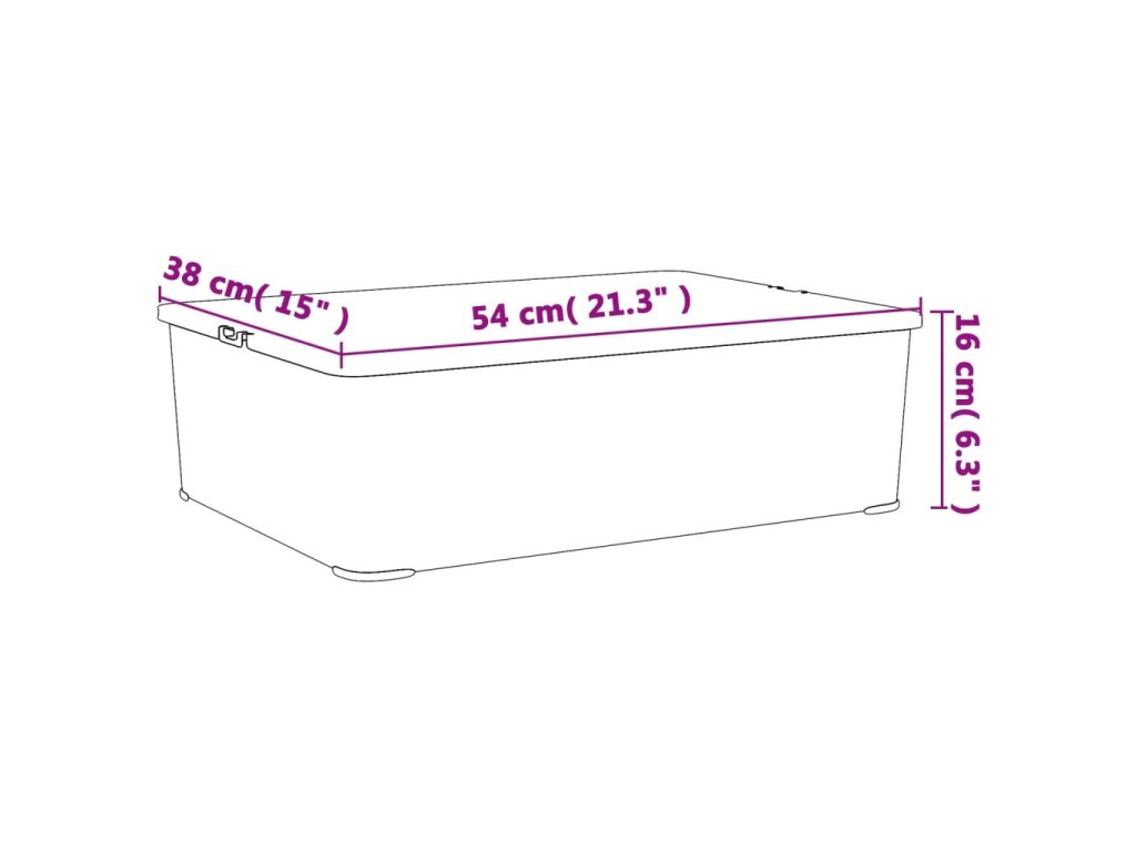 - Odolný materiál: Úložný box je vyroben z PP, který je oblíbený pro svou vysokou odolnost proti poškození, houževnatost a dlouhou životnost. Box je proto robustní a snadno se čistí.