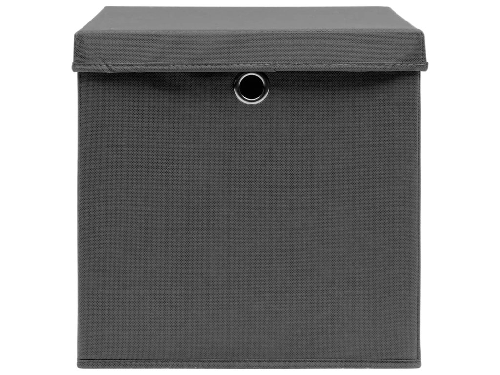 Úložné boxy s víky 10 ks šedé 32 x 32 x 32 cm textil 288336